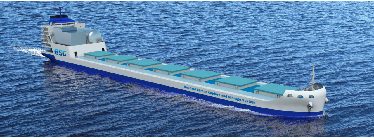 既に開発済みのアンモニア燃料パナマックスバルクキャリアの設計を基盤とし、最船尾に居住区を配置、その前方にCO2回収タワー及び液化CO2一時貯留タンクを配置するデザインとしております。